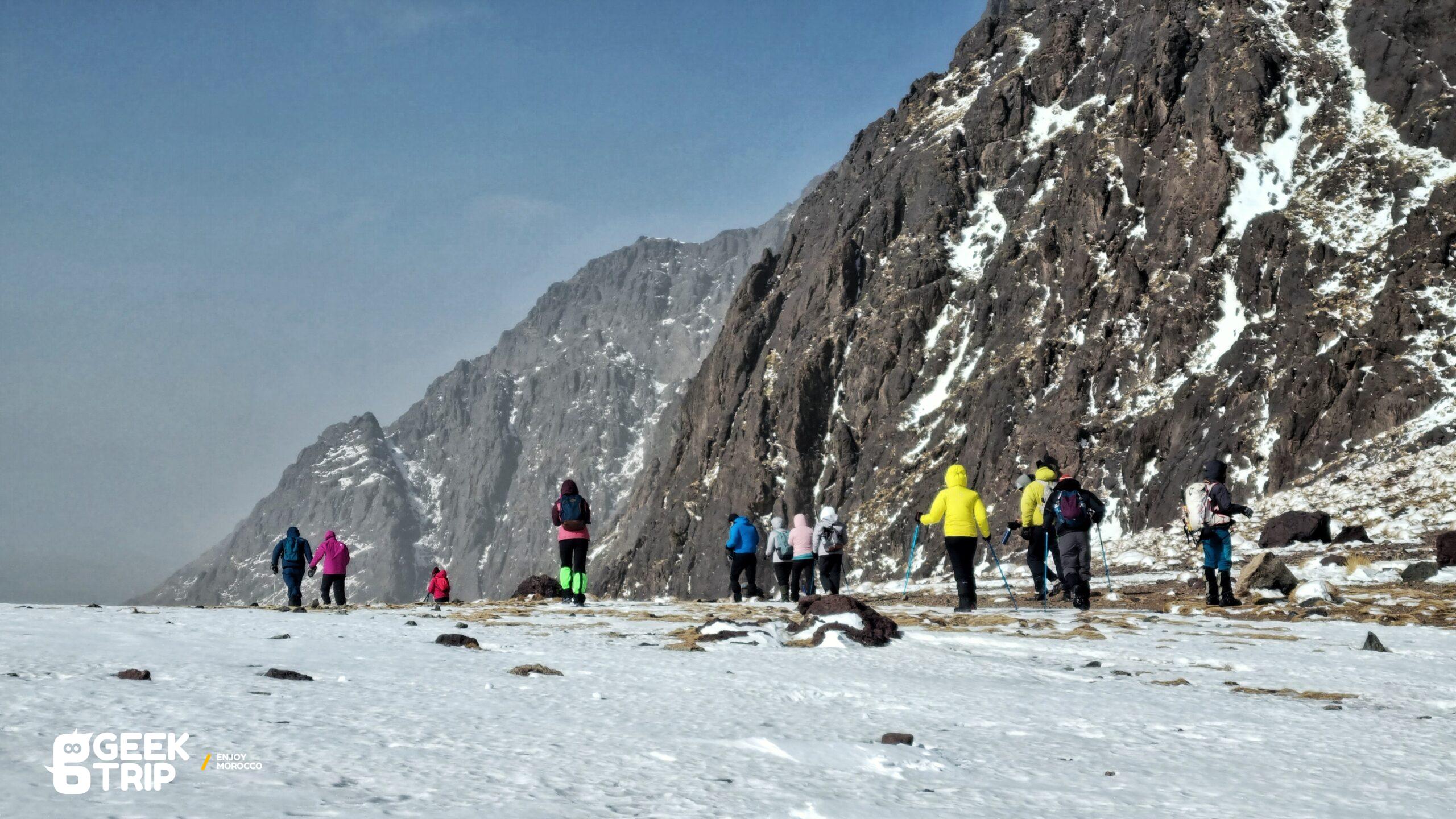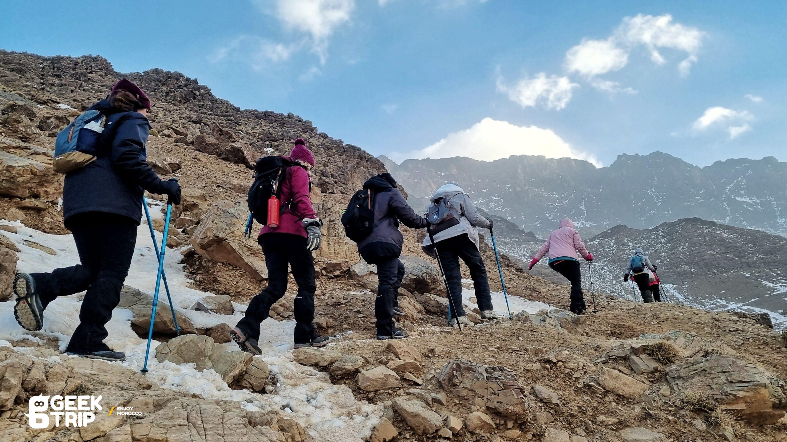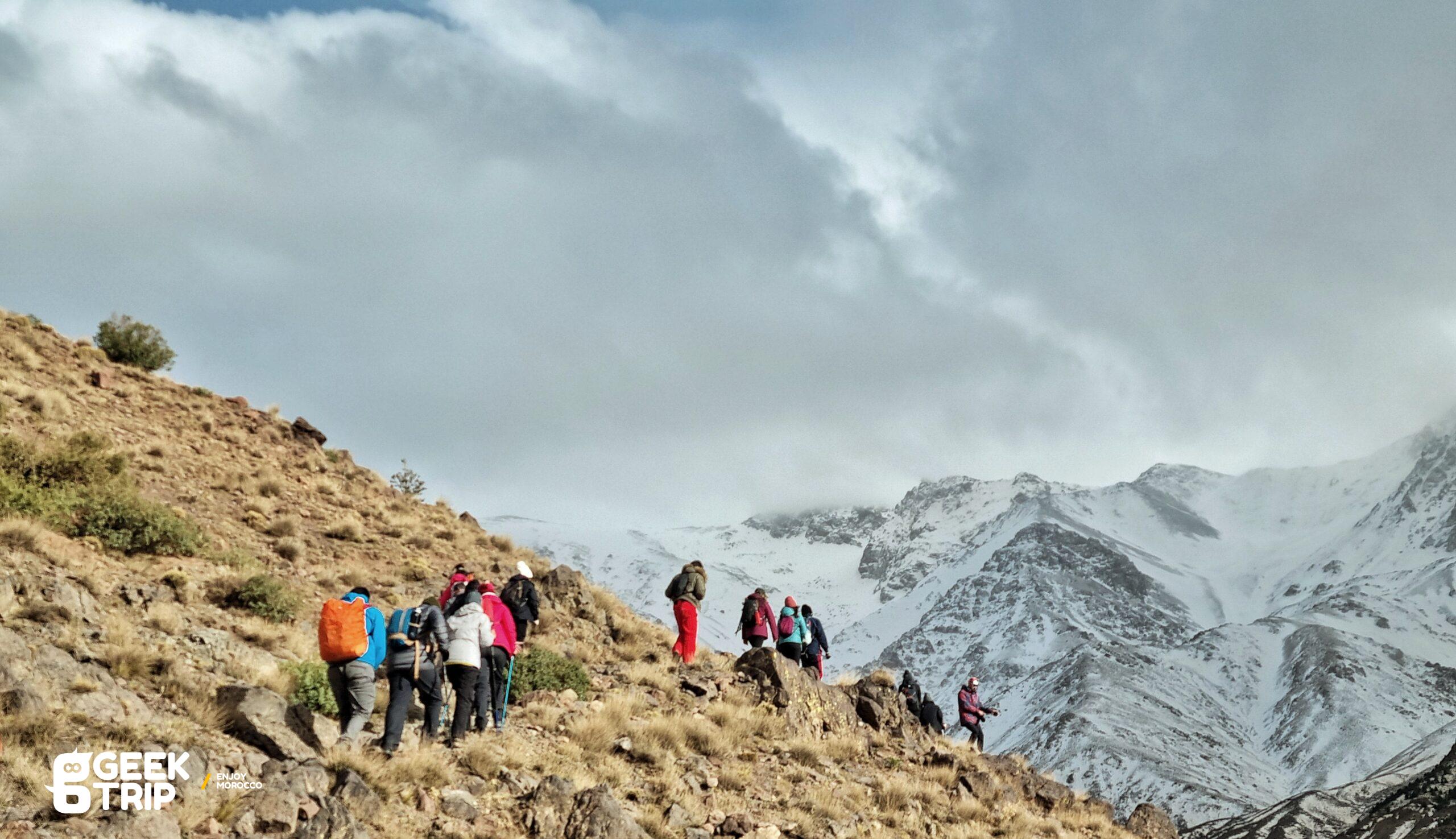 Après un bon petit déjeuner, nous commençons la randonnée depuis le gite et qui nous emmène à travers des chemins sinueux jusqu’au col de Tacheddirt, situé à une altitude de 3172 mètres.
