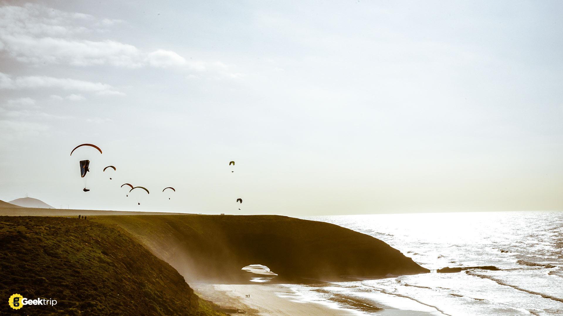 10:00 Nous allons nous diriger vers le petit village de pécheurs entre Aglou et Mirleft, sur une petite barre montagneuse, proche de l’Océan, un point d’envol se situe à 250 mètres d’altitude, au bout d’une petite piste assez raide et excitante. Vous profiterez de 15 minutes de vol en binôme avec un instructeur professionnel (poids maximum autorisé par personne : 90kg, au delà nous consulter)