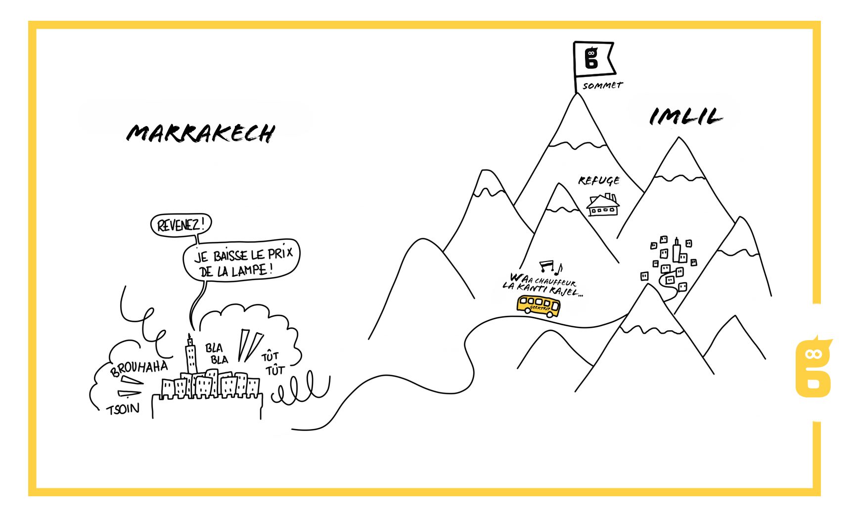 – Si vous n’êtes pas motorisé : Bénéficiez d’un transfert A/R (en option) si vous êtes 2 à 5 personnes, notre chauffeur vous accueillera à Marrakech ( devant la Gare de train ) et vous emmènera à Imlil votre village de départ pour l’ascension.